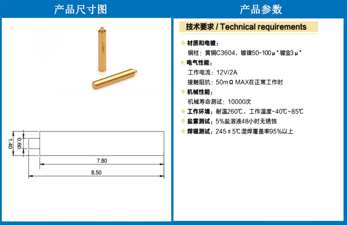 1.4*8.5銅柱(卷帶) 當(dāng)前位置:首頁 » POGO PIN充電彈簧頂針 » 銅柱系列